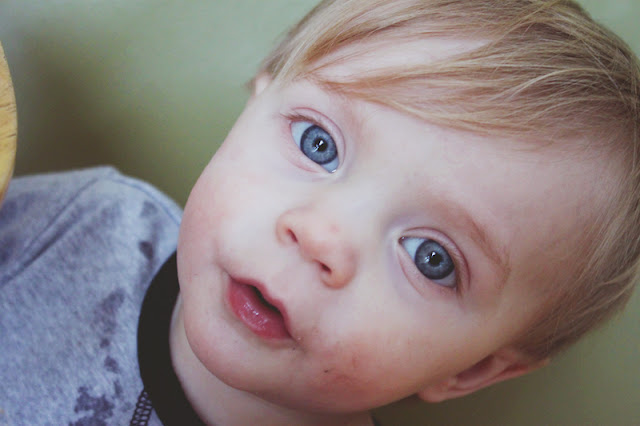 I hope Samuel feels better! He is georgous! Such blue eyes!