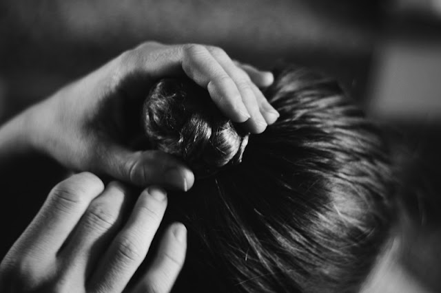 hair into a ballet bun.