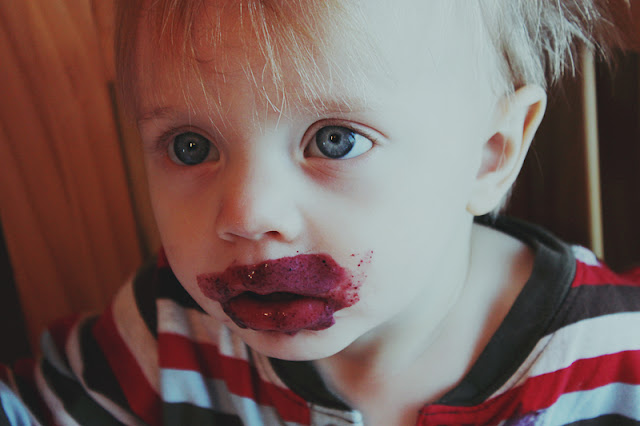 Here are some pics of his favorite berry smoothie. Make that the entire family’s fave. 🙂