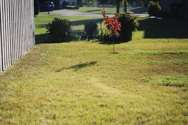 6} See that little maple with the red leaves? I found that maple growing in my garden two years ago. A volunteer, my dad calls it. Well, being the plant lover {and not wanting to spend a ton on new trees} I nurtured it for a year and then last year dug it up and planted it in the corner of my yard. Now, 15 months later it’s grown almost a foot. Some day it will be a glorious tree — wonder how old I’ll be then?