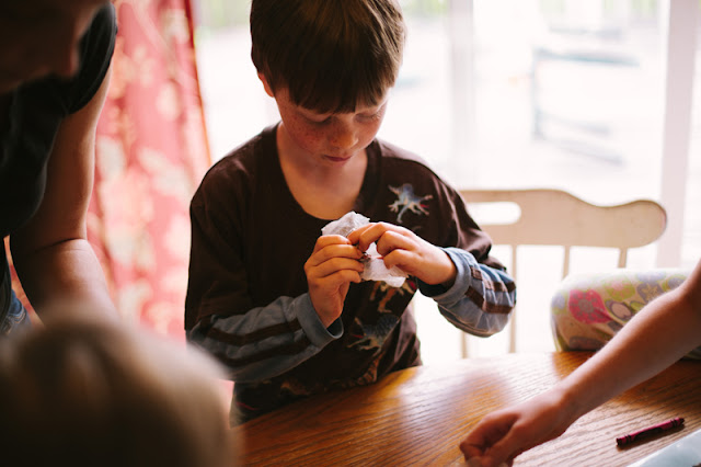 working so hard to get the wax off of the new crayons we made