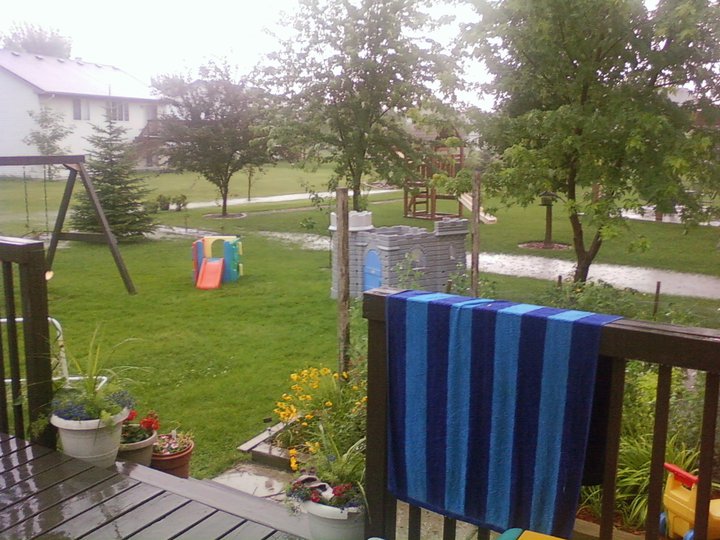 2) Despite having massive amounts of moisture already my kids are enjoying our blow-up pool. Because of the rain I’ve left the pool in the same spot for too long of a time. That has successfully burnt some of our grass. Oh, well, their smiles made it worth it, right?