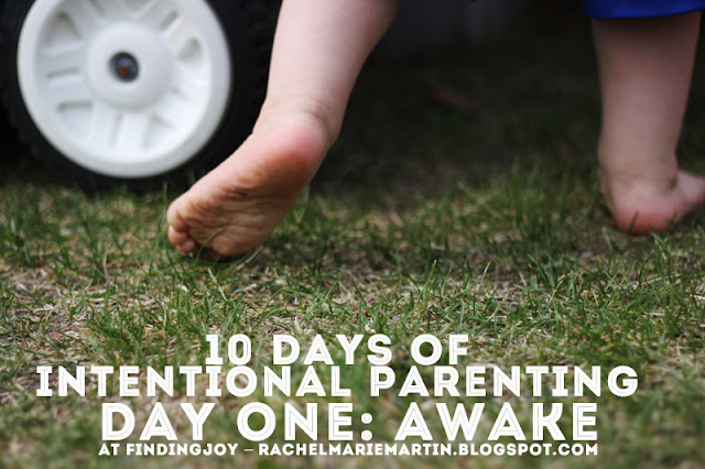 Day One – Awake. This day helped me to see the kids and our interaction and how quickly I can be lulled into moving on auto-pilot. In fact, because of this day my topic order shifted a bit — Day 4 : Listen wasn’t going to come until week 2, however I noticed how distracted I truly am. Read this as well: the distracted mom learns to listen . Click Awake to visit Day One.