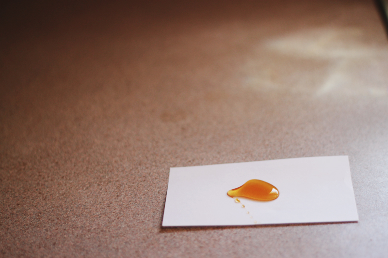 pool of honey on cardboard.